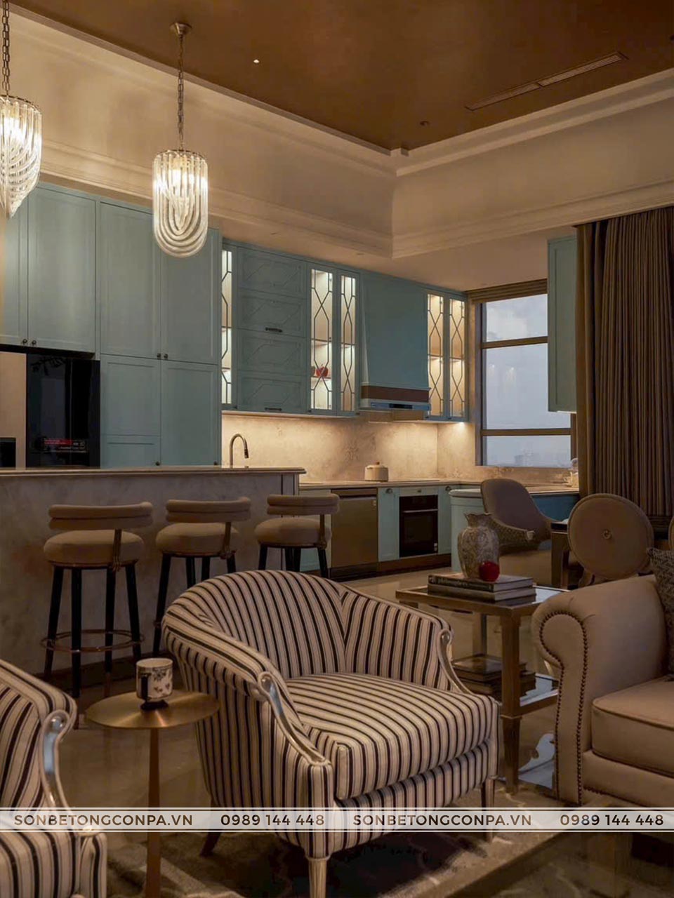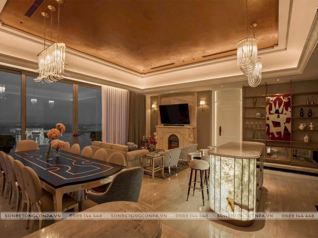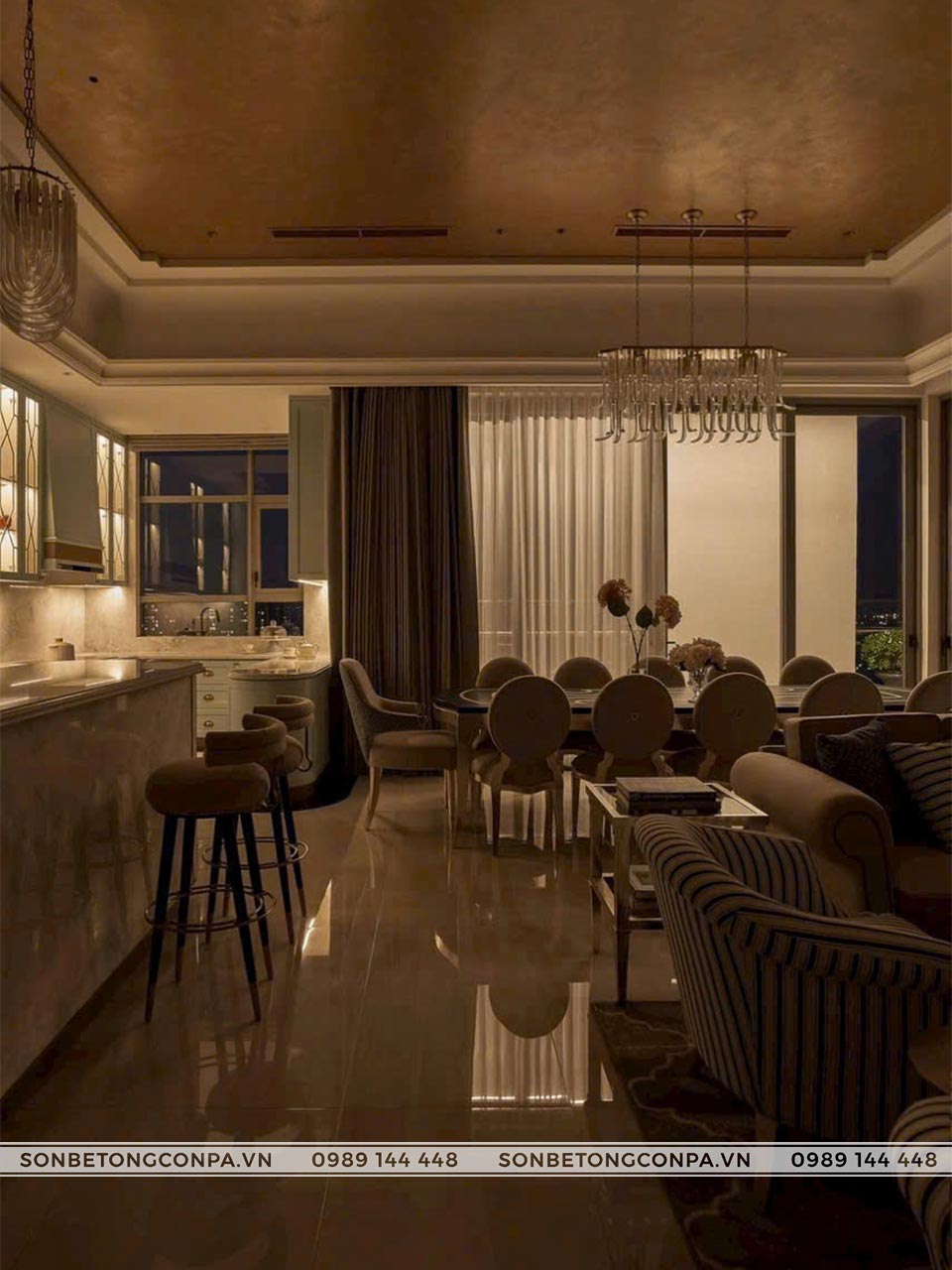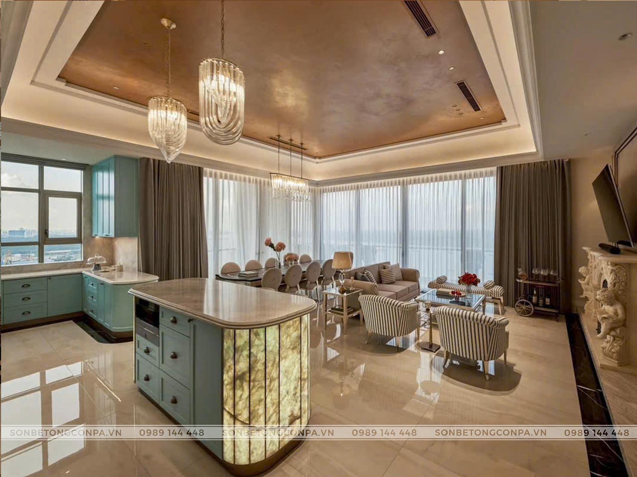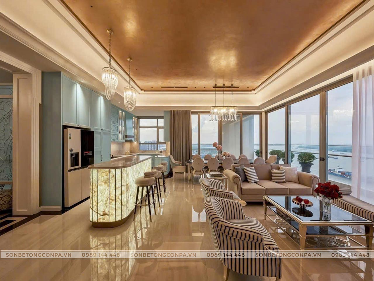Một công trình căn hộ sang trọng, cao cấp với view cực đẹp kết hợp với trần sơn kim loại.