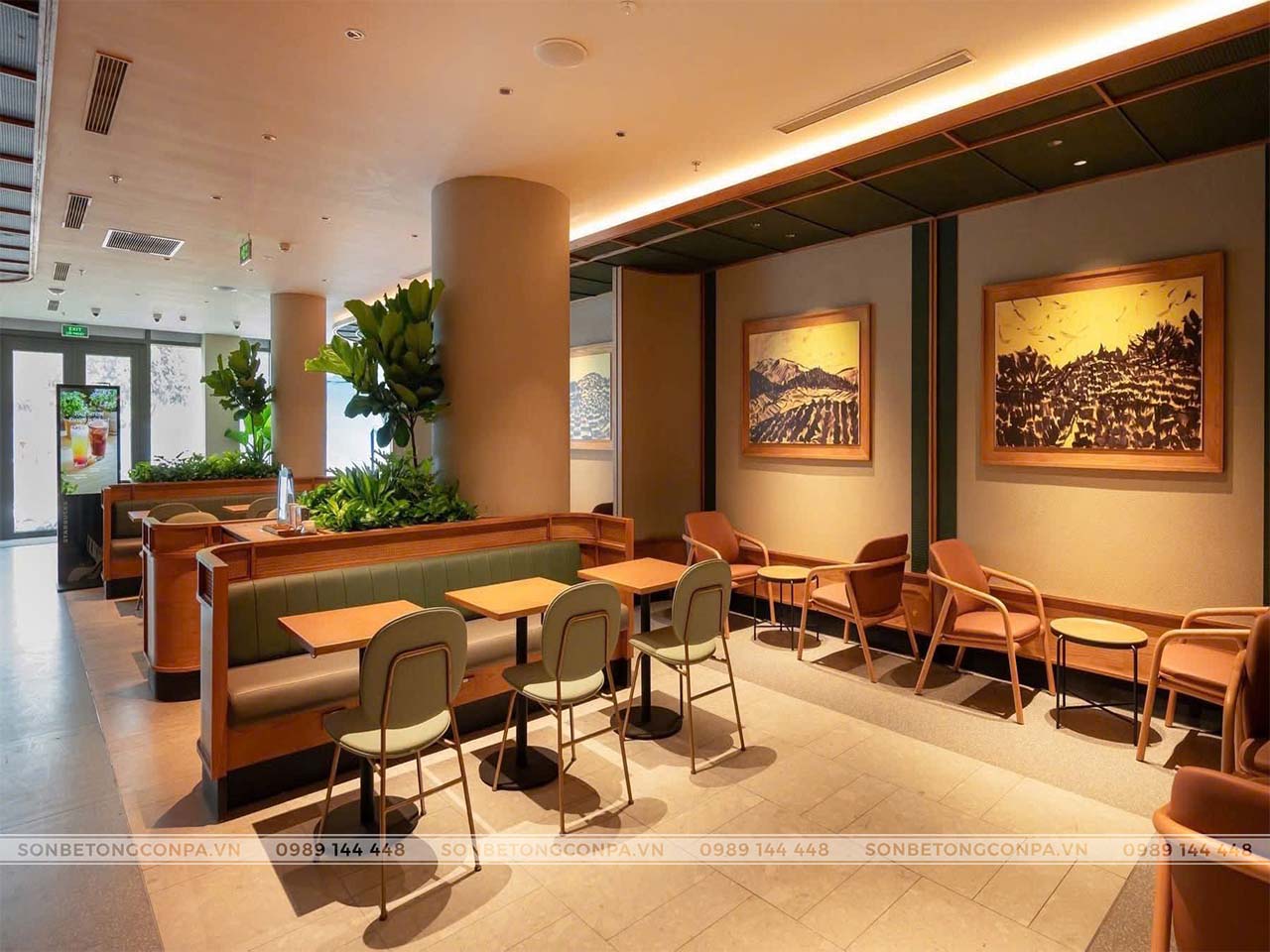 Ứng dụng sơn cát Conpa, công trình Starbucks Đà Nẵng mang đến một không gian cà phê giàu cảm xúc, nơi vẻ đẹp của cát biển được tái hiện qua hiệu ứng bề mặt tinh tế và sống động.