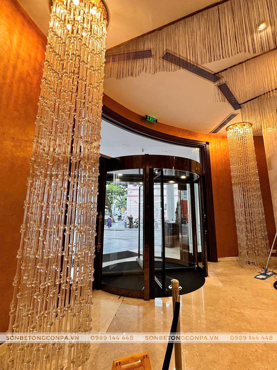 Hotel de l’Opera Hanoi – MGallery mang phong cách nghệ thuật sân khấu độc đáo, kết hợp cổ điển và hiện đại. Nội thất nổi bật với sơn hiệu ứng kim loại Conpa, tạo chiều sâu ánh kim sang trọng và cuốn hút trong không gian sảnh, hành lang và phòng nghỉ. Bề mặt phản chiếu ánh sáng tinh tế, góp phần làm nổi bật nét lộng lẫy đầy tính nghệ thuật. Đây là điểm nhấn hoàn hảo cho một khách sạn giữa lòng Hà Nội hoa lệ.