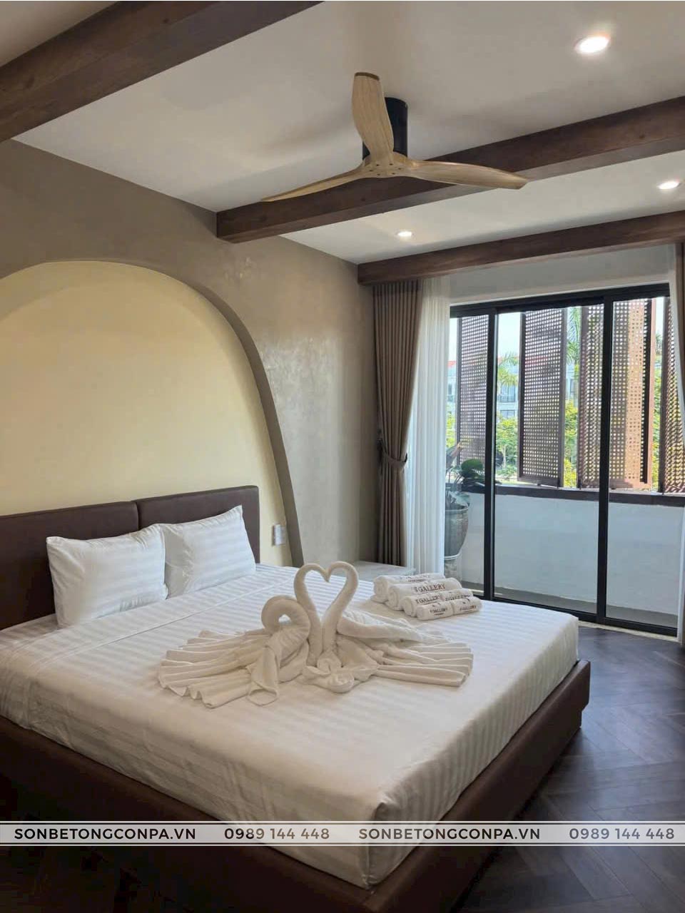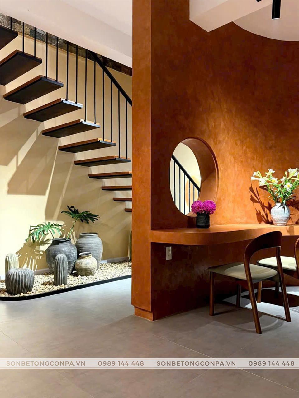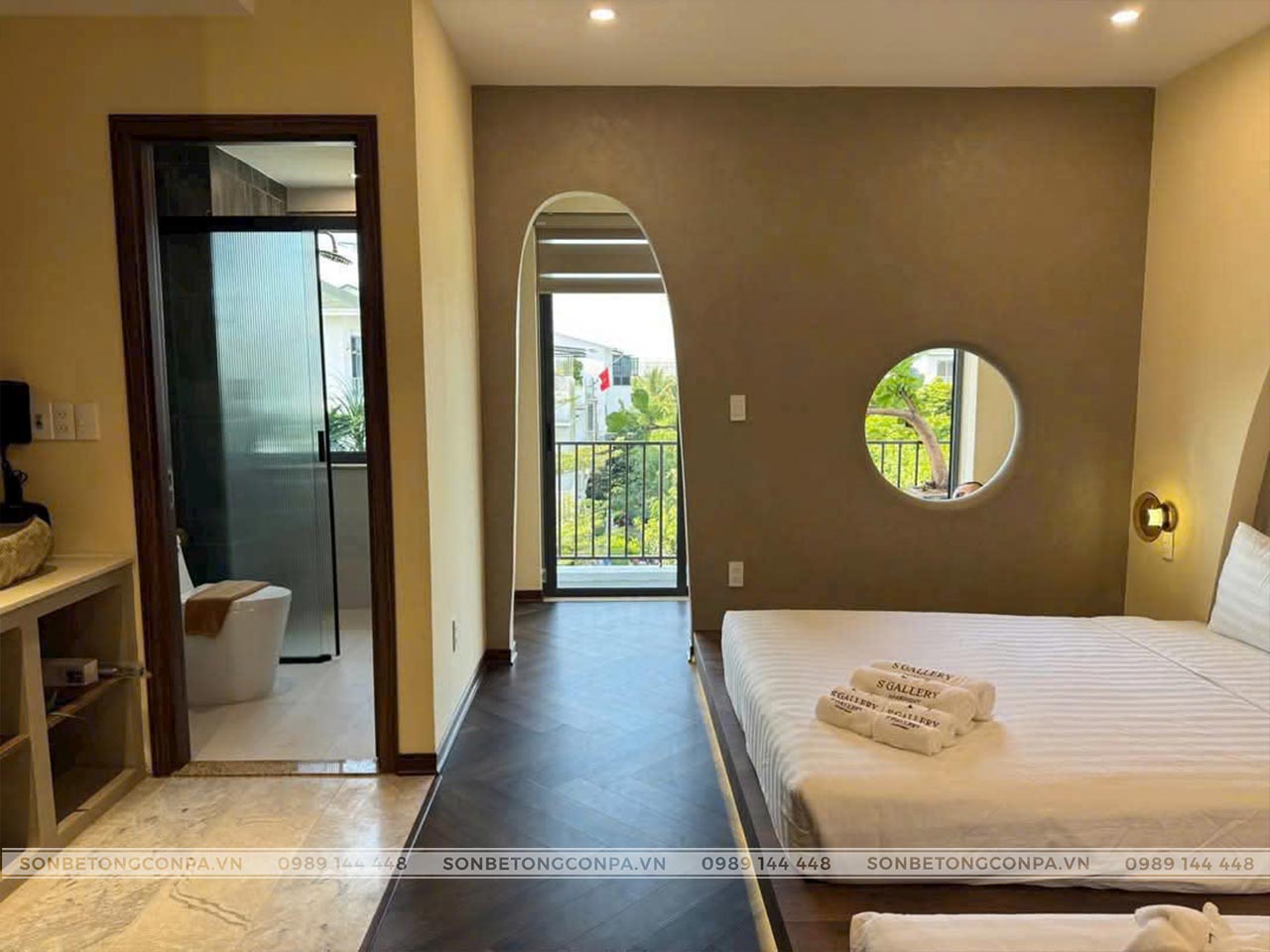 Căn hộ sử dụng sơn hiệu ứng bê tông Conpa tạo nên không gian hiện đại, tinh tế với bề mặt mộc mạc, tự nhiên. Màu sắc đa dạng và kết cấu độc đáo của sơn giúp làm nổi bật từng khu vực, tạo điểm nhấn ấn tượng và mang lại cảm giác gần gũi, ấm cúng cho không gian sống.