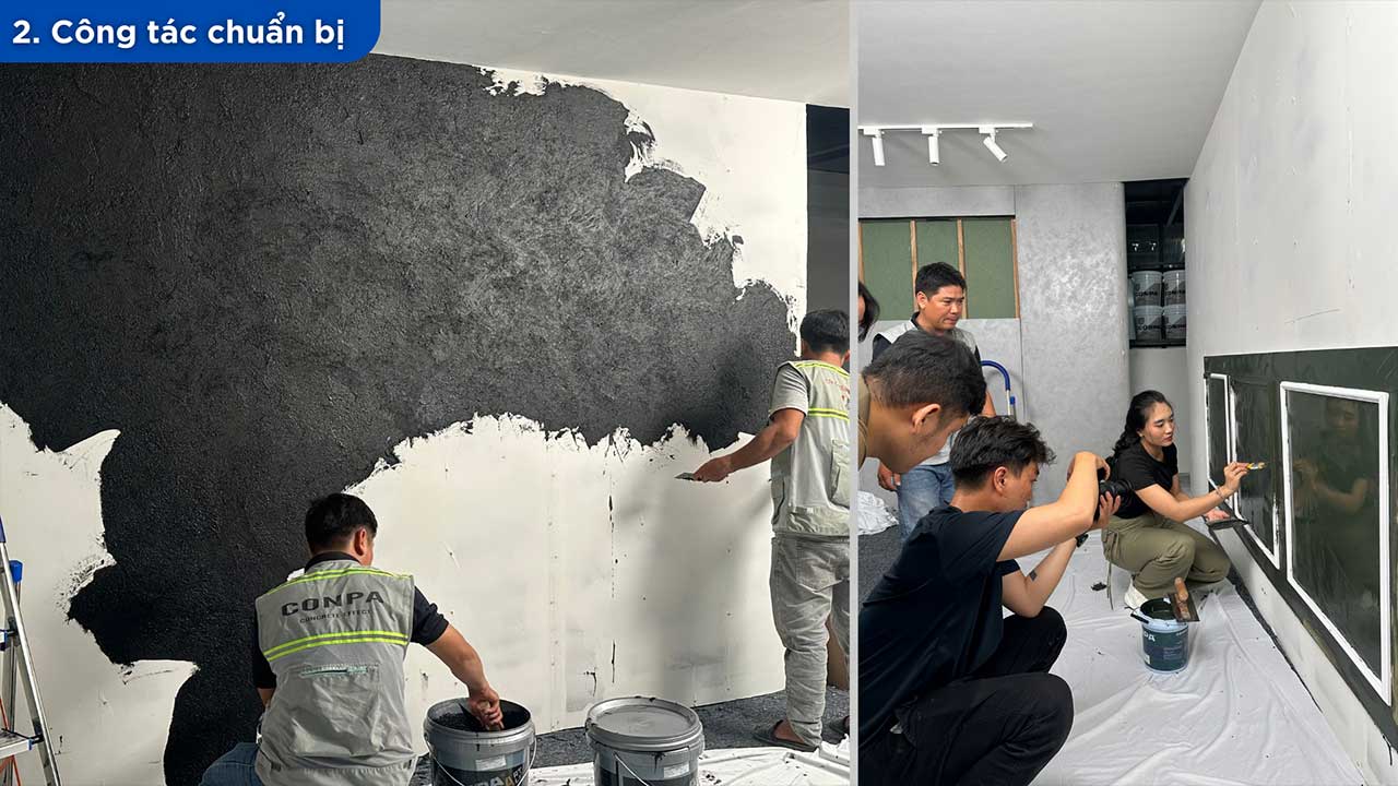 Năm 2025, Conpa tổ chức CONPA TRAINING COURSE LẦN 3 với mục tiêu nâng cao tay nghề và chuẩn hóa quy trình thi công sơn bê tông, sơn hiệu ứng trên toàn quốc. Chương trình tập trung vào giới thiệu vật liệu mới, cập nhật công nghệ sơn hiệu ứng hiện đại, hướng dẫn kỹ thuật xử lý bề mặt, tạo hiệu ứng chuẩn thẩm mỹ và kiểm soát chất lượng công trình. Đội thợ được đào tạo trực tiếp theo hình thức thực hành thực tế, cầm tay chỉ việc, giúp hiểu sâu vật liệu và làm chủ kỹ thuật thi công ngay tại lớp học.