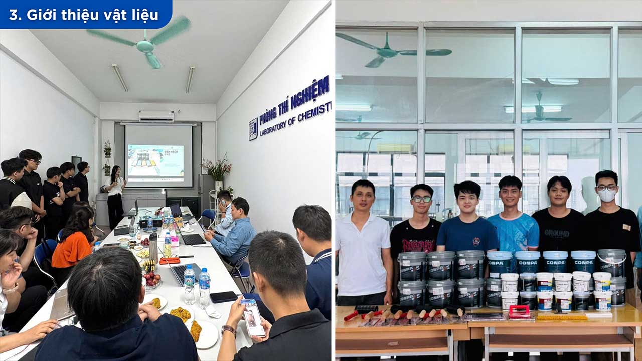 Năm 2025, Conpa tiếp tục mở rộng các chương trình hợp tác đào tạo tại nhiều trường Đại học trên toàn quốc như Đại học Kiến Trúc Đà Nẵng, Đại học Xây dựng Hà Nội, Đại học Huế, Cao đẳng Xây dựng TP.HCM và Đại học Bách Khoa Đà Nẵng. Thông qua workshop “Màu và Chất”, các buổi giới thiệu vật liệu và đồng hành cùng đồ án tốt nghiệp, Conpa mang sơn hiệu ứng bê tông, sơn kim loại và các dòng vật liệu mới đến gần hơn với sinh viên kiến trúc – nội thất.