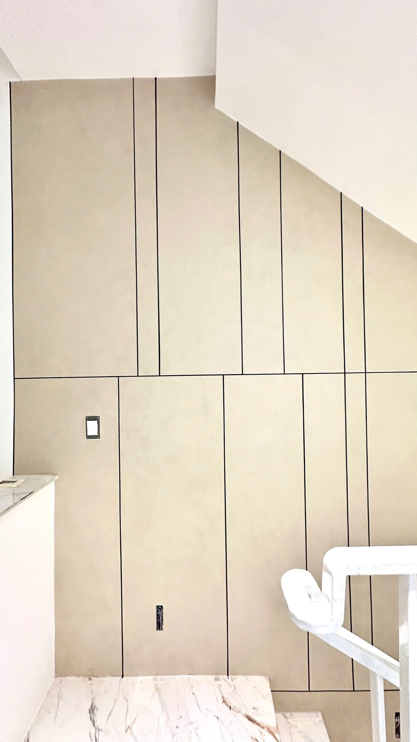 Kiểu roan này mang lại cảm giác liền mạch, tối giản và tự nhiên, thích hợp với các hiệu ứng như xi măng, bê tông mịn hoặc đá mờ. Roan âm giúp phân chia mảng tường một cách nhẹ nhàng, không quá tương phản nhưng vẫn tạo được chiều sâu và sự chỉn chu cho bề mặt.
